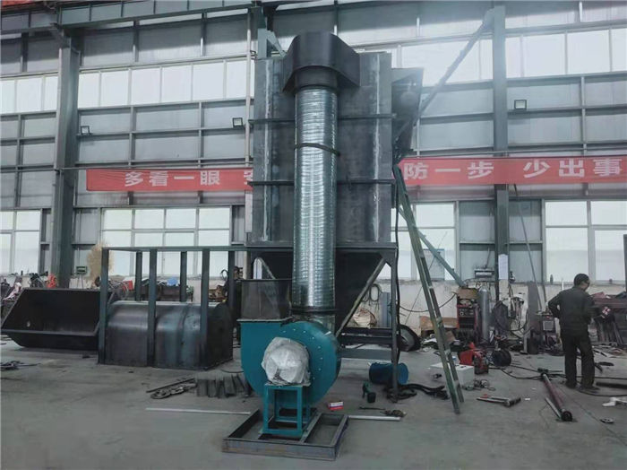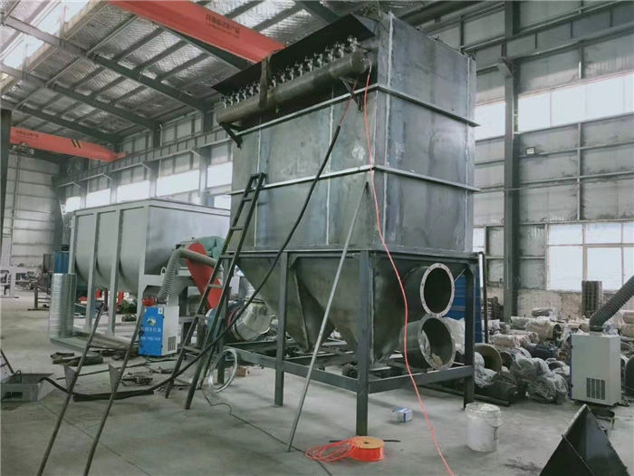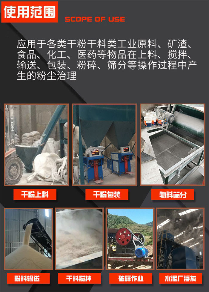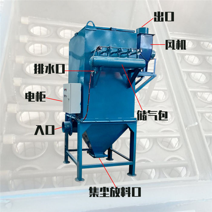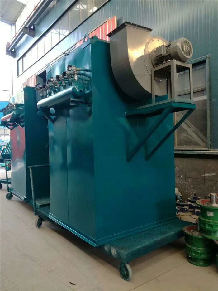 該設(shè)備為多袋式脈沖除塵裝置,當含塵氣體由進風口進入除塵器,首先碰到進出風口中間的斜板及擋板,氣流便轉(zhuǎn)向流入灰斗,同時氣流速度放慢,由于慣性作用,使氣體中粗顆粒粉塵直接流入灰斗。起預(yù)收塵的作用,進入灰斗的氣流隨后折而向上通過內(nèi)部裝有金屬骨架的濾袋粉塵被捕集在濾袋的外表面,凈化后的氣體進入濾袋室上部清潔室,匯集到出風口排出,含塵氣體通過濾袋凈化的過程中,隨著時間的增加而積附在濾袋上的粉塵越來越多,增加濾袋阻力,致使處理風量逐漸減少,為正常工作,要控制阻力在一定范圍內(nèi)(140--170毫米水柱),必須對濾袋進行清灰,清灰時由脈沖控制儀順序觸發(fā)各控制閥開啟脈沖閥,氣包內(nèi)的壓縮空氣由噴吹管各孔經(jīng)文氏管噴射到各相應(yīng)的濾袋內(nèi),濾袋瞬間急劇膨脹,使積附在濾袋表面的粉塵脫落,濾袋得到再生。清下粉塵落入灰斗,經(jīng)排灰系統(tǒng)排出機體。由此使積附在濾袋上的粉塵周期地脈沖噴吹清灰,使凈化氣體正常通過,保證除塵系統(tǒng)運行。