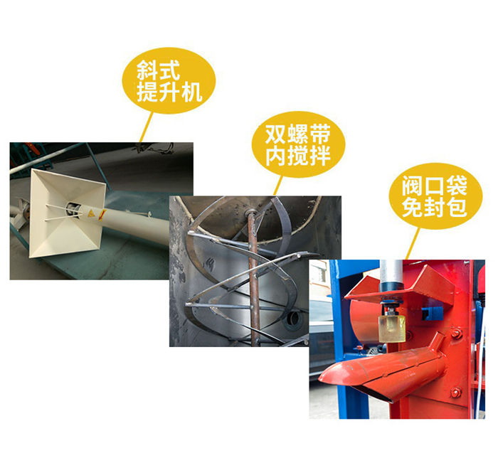 該設備為全自動干粉砂漿攪拌機,整機四角加上料計量,適合多種物料混合的攪拌,設定好斤稱之后,物料由提升機上料,斤稱達到自動停止,然后接著上第二種物料,以此類推,計量準確,省時省力;出料系統(tǒng)設計也是電腦計量裝置,無需人工二次稱重,閥口袋包裝,無需再次封口,出料速度快,4秒一袋,1人即可操作,省時省力;攪拌機機身為臥式U型筒體,內部由內外兩層螺帶交錯布置,攪拌均勻,混合速度快,5至8分鐘即可攪拌均勻,出料可根據(jù)不同物料的實際需求定做多個出料口。